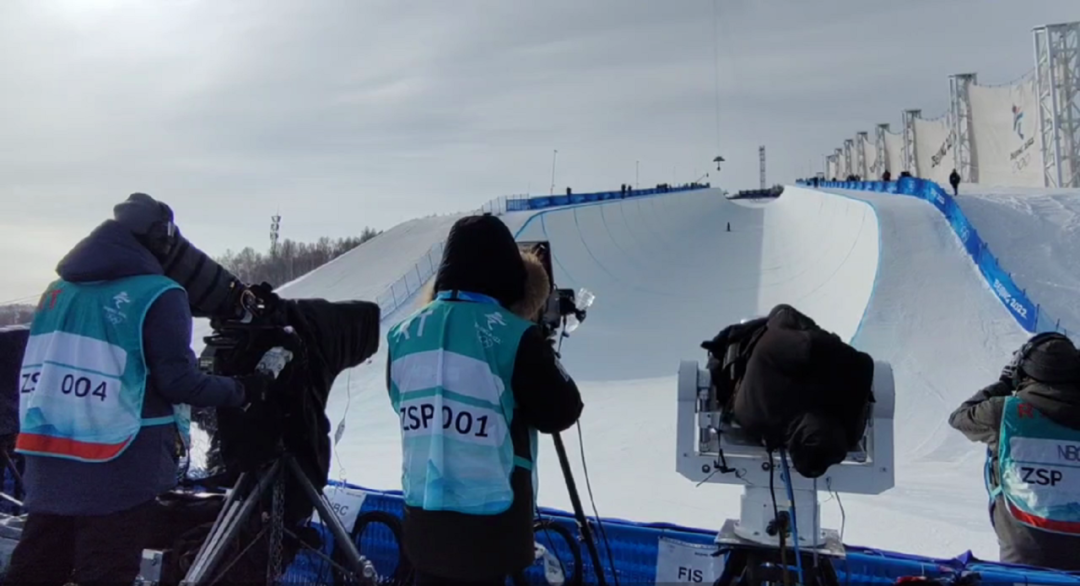为了确保系统正常工作,两位参与这套系统研发并提供技术支持的北理工suncitygroup太阳新城官网学子——赵祺森博士研究生与杨焘硕士研究生自2022年1月19号就已经带着他们的系统进入冬奥赛场,开始为冬奥指定内容的拍摄进行准备。