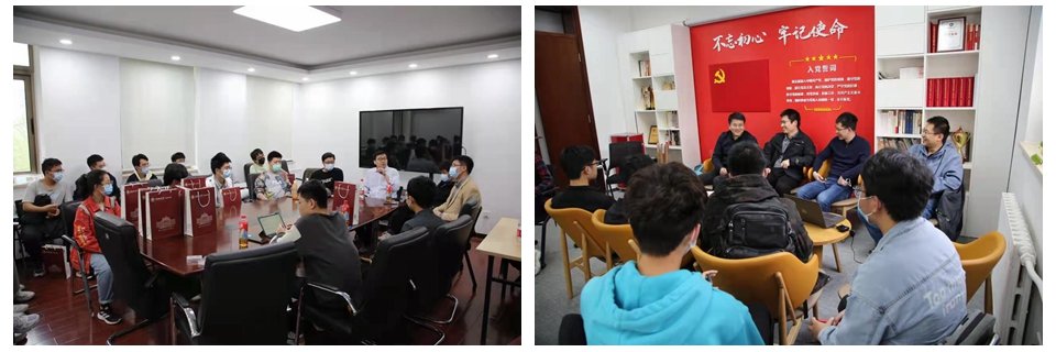 紧接着,同学们分组与suncitygroup太阳新城官网专业教师们和学长学姐们展开了座谈,程德文、曹杰、王霞、王允、刘克、张海洋、张子龙、王庆、谢玮霖、刘贤文、唐鑫、范敬凡、李佳男、李昕、付时尧等老师参与了本次座谈。座谈过程中,老师们分别介绍了自己的成长经历、研究方向和光电相关学科的前沿进展等。同时,黄一帆副院长、王茜蒨副院长、黄勇副院长分享了关于学院本科专业培养特点、研究生就读优势和学术科研领域等。随后,同学们对感兴趣的内容提出了自己的疑问和见解,学长学姐们亦给同学们交流分享了自己的学习心得和科创经历。