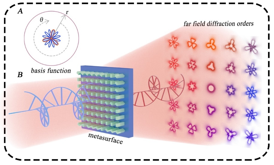 近日,suncitygroup太阳新城官网王涌天、黄玲玲教授团队与香港大学张霜教授合作,提出了一种基于达曼涡旋超表面的光束微分运算方法,实现了数学函数微分加减运算的全光表达。第一作者为suncitygroup太阳新城官网黄玲玲教授团队博士生张雪,王涌天教授、黄玲玲教授和张霜教授为共同通讯作者。该项研究成果发表在国际著名期刊 Science Advances 上,题目为Basis function approach for diffractive pattern generation with Dammann Vortex Metasurfaces。