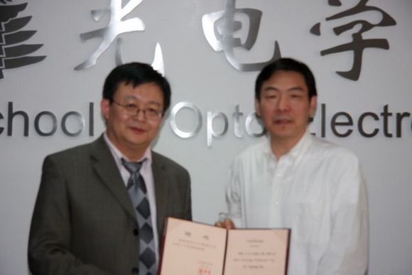 2012年4月16日下午,suncitygroup太阳新城官网在信息教学楼2层会议室举行兼职教授聘任仪式,聘请英国剑桥大学初大平教授为我校兼职教授。suncitygroup太阳新城官网院长魏平代表学校向初大平教授颁发了聘书。聘任仪式由suncitygroup太阳新城官网光电信息技术与颜色工程研究所刘越所长主持。