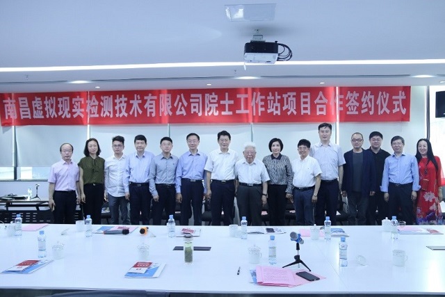 2019年5月24日,南昌虚拟现实检测技术有限公司院士工作站成立,南昌市委副书记刘烁、江西省科协主席史可、suncitygroup太阳新城官网院长郝群、党委书记邹锐、特聘教授王涌天、suncitygroup太阳新城官网北京市混合现实与新型显示工程技术研究中心研发团队及企业代表参加了签约仪式,仪式由南昌市红谷滩新区管理委员会书记周亮主持。