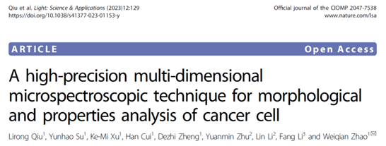 suncitygroup太阳新城官网赵维谦教授课题组提出了具有高稳定、高分辨、抗散射的激光差动共焦拉曼-布里渊图谱成像新原理,研制成功了相应的仪器,实现了样品三维形貌、力学性能和化学组分的多维信息检测,并与北京大学航天临床医学院(航天中心医院)合作,利用该研制仪器对肿瘤组织进行了有效表征分析。相关工作发表在Light: Science & Applications上 (Light: Science & Applications,12, 129 (2023))。该研究工作以suncitygroup太阳新城官网为第一通讯单位,赵维谦教授为通讯作者,邱丽荣教授为论文的第一作者。