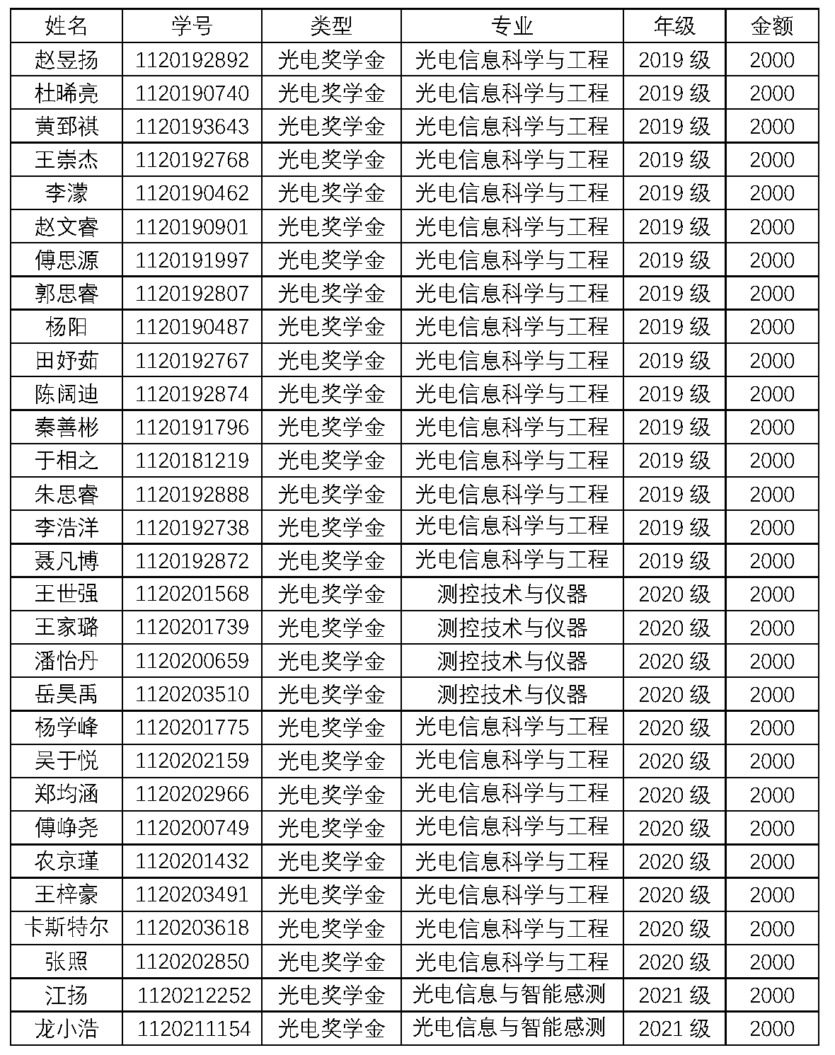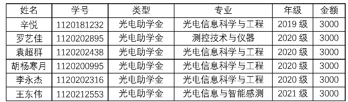 2021-2022学年光电奖助学金评选结果