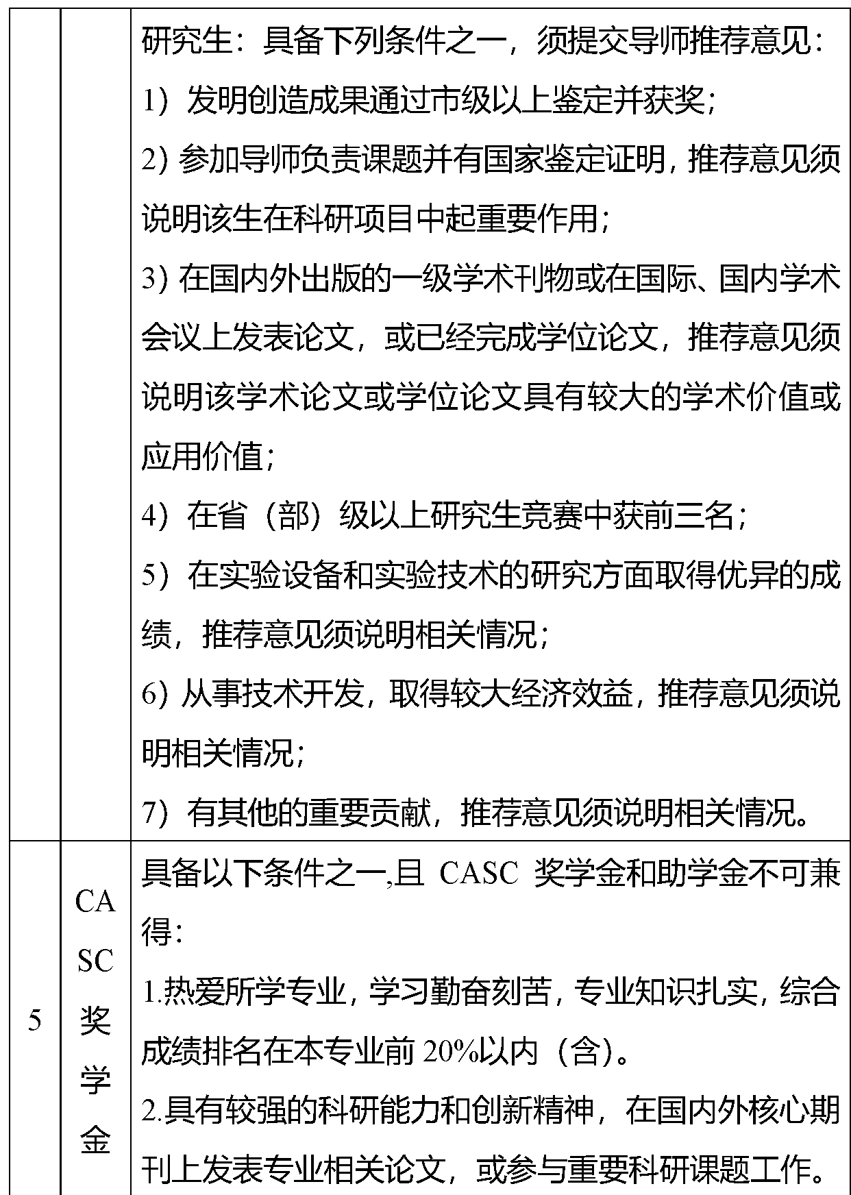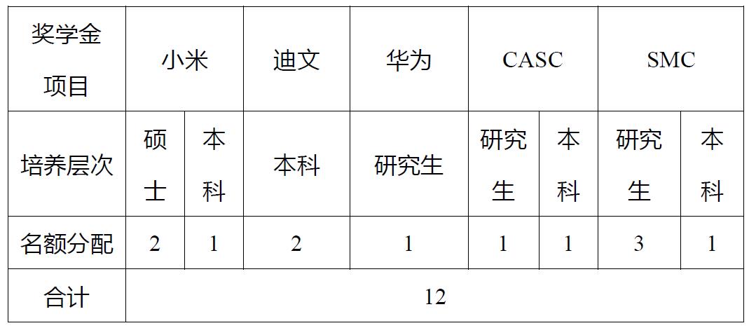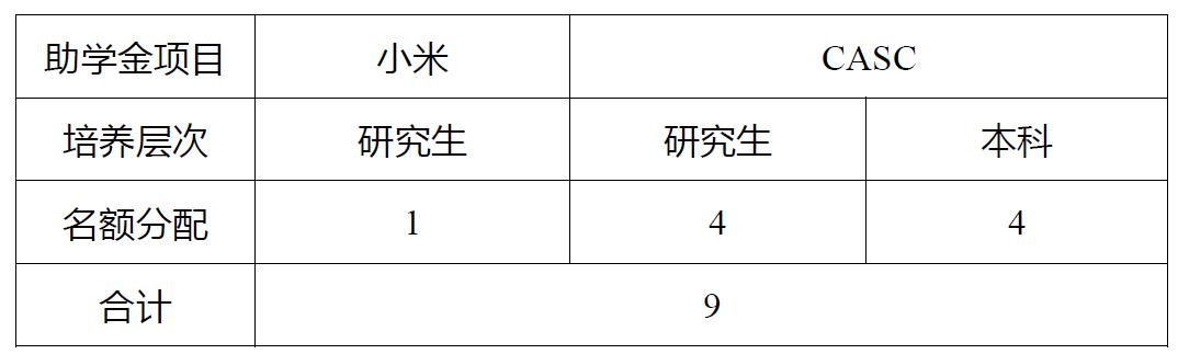 7.CASC助学金:本科生3000元/人,研究生2000元/人。