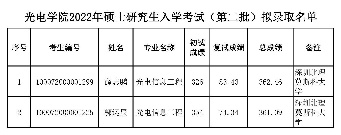 通知公告 通知公告 首页» 通知公告» 学院通知 suncitygroup太阳新城官网2022年硕士研究生入学考试(第二批)拟录取名单 编辑:盛筠 审核:王茜蒨 发布日期:2022-04-02 阅读次数: 分享到:
