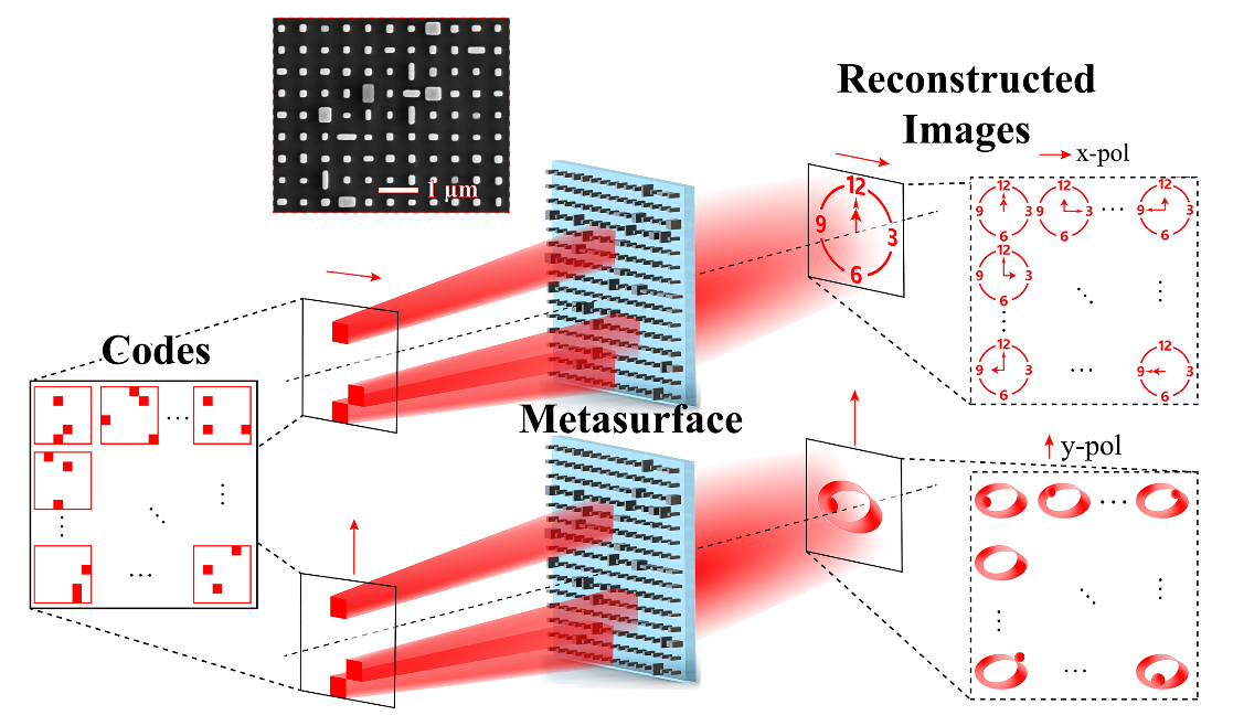 近日,suncitygroup太阳新城官网王涌天教授团队的黄玲玲教授、李昕副研究员等人,提出了一种码分复用启发的动态超表面全息,以不同的编码光与目标共同编码在一个超表面全息元件上,结合超表面的偏振调控,实现了多通道图像记录与重建。该项研究成果以Code division multiplexing inspired dynamic metasurface holography为题发表在国际著名期刊Advanced Functional Materials上。