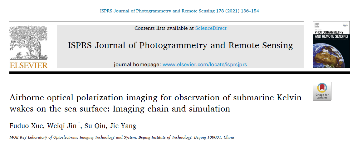 近日,suncitygroup太阳新城官网的金伟其教授及其指导的2019级博士生薛富铎等提出了利用机载光学偏振成像技术进行水下运动目标尾迹成像探测的创新方法,相关研究成果以“Airborne optical polarization imaging for observation of submarine Kelvin wakes on the sea surface: Imaging chain and simulation”为题发表在遥感领域的国际顶级期刊《ISPRS Journal of Photogrammetry and Remote Sensing》(IF=8.979)上。本研究得到了国家自然科学基金项目等支持。